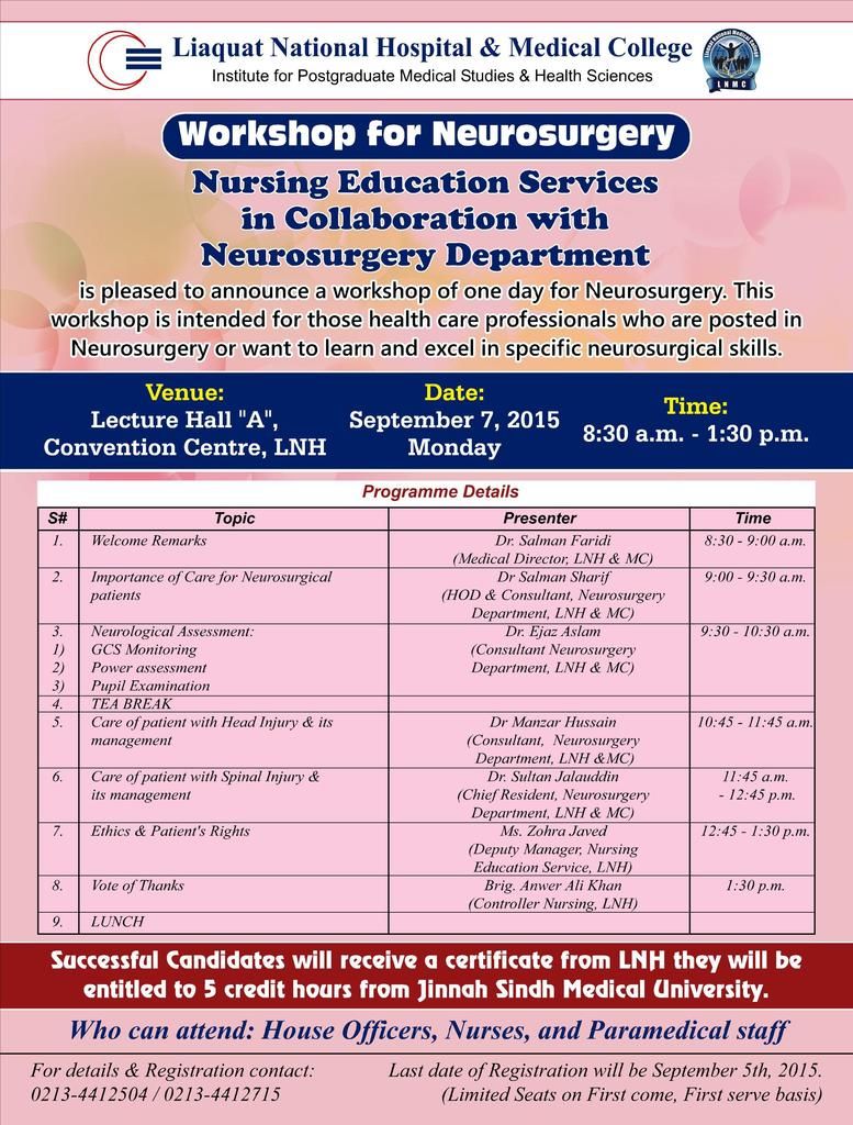 {Awareness} LNH - One Day Workshop for Neurosurgery on 7th September, 2015 at Liaquat National Hospital