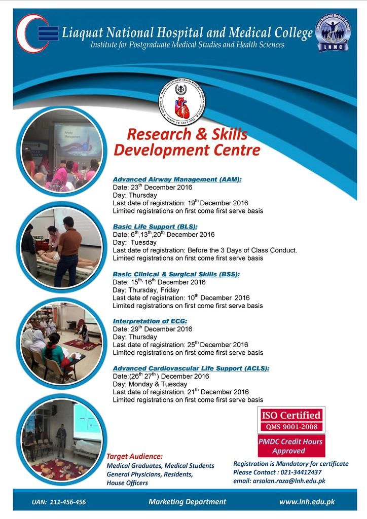 {Awareness} LNH - Skills Development Courses offered for the month of December 2016 at Research & Skills development Centre, Liaquat National Hospital